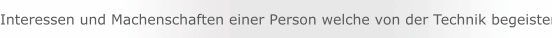 Auf den folgenden Seiten werde ich meine Hobbys und Tätigkeiten darstellen. Als Technik- Freak werden natürlich Bereich wie Modellbau, Moped und handwerkliche Aktivitäten in Haus und Hof ausführlich behandelt. Aber auch der Sport und diverse allgemeine Themen sollen nicht zu kurz kommen.